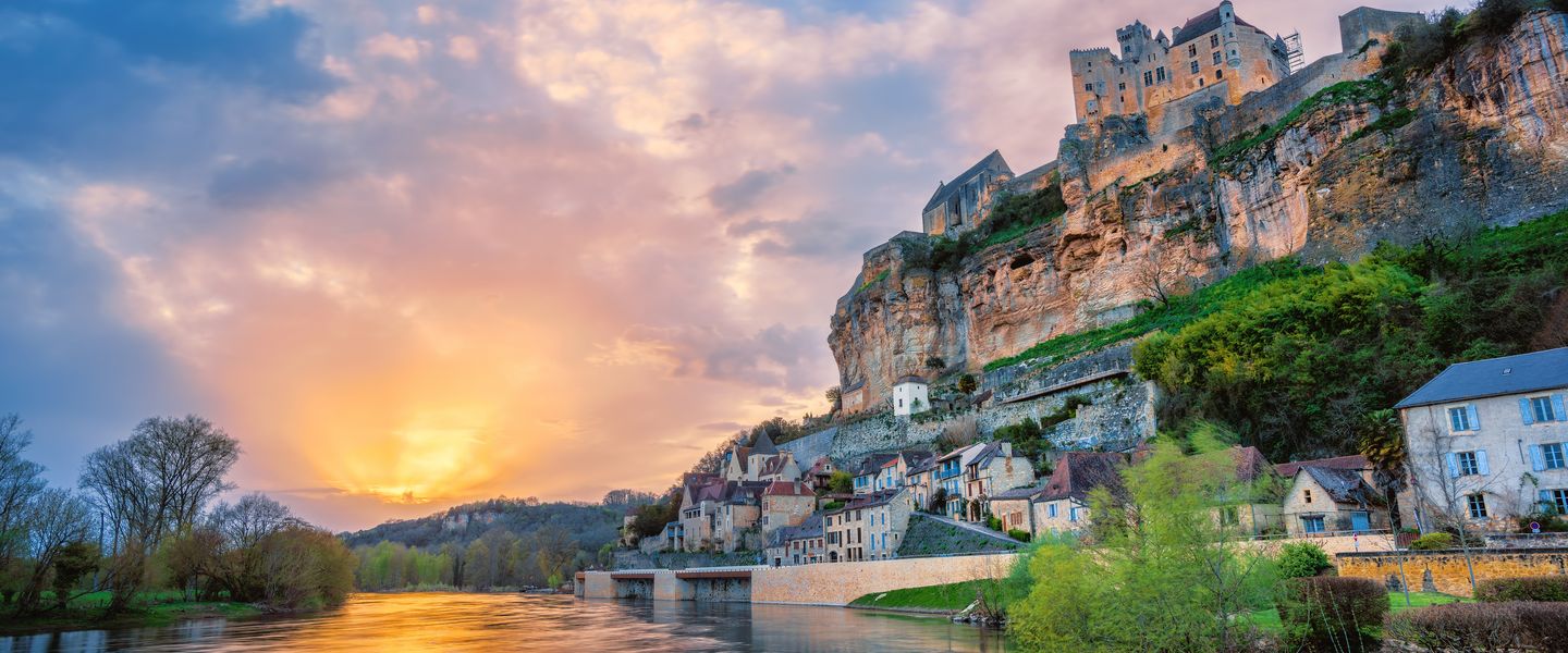 Heute steht der malerische Teil des Dordognetals auf dem Programm, der von vielen als das schönste Flusstal Europas angesehen wird. Vormittags besuchen Sie die beeindruckende Burg von Castelnaud, die majestätisch auf einem Felsen über dem Fluss thront. Nach dieser historischen Entdeckung können Sie sich bei einer gemütlichen Flussfahrt auf der Dordogne entspannen, während Sie auf einer historischen Gabare die sanften Wellen des Flusses genießen. Am Nachmittag erreichen Sie die hängenden Gärten von Marqueyssac, wo Sie von den herrlichen Parkanlagen und dem atemberaubenden Ausblick auf den Fluss verzaubert werden.