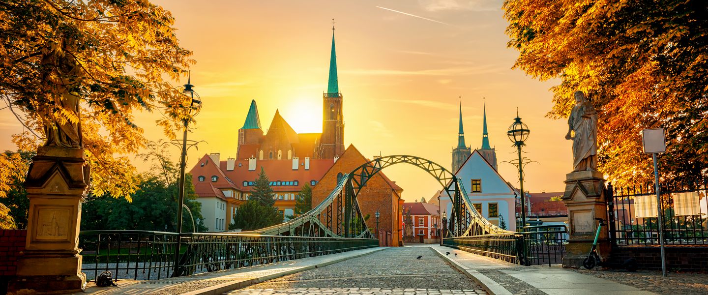 Nach dem Frühstück fahren Sie über Katowice nach Breslau, auch bekannt als "Die Blume Europas". Diese über 1.000 Jahre alte Stadt an der Oder erstrahlt in neuem Glanz und bietet eine lebendige Atmosphäre. Während einer Stadtführung erleben Sie die fein herausgeputzten Gassen der Altstadt, die zwischen dem Marktplatz und der barocken Universität pulsieren. Die nahegelegene Dominsel hingegen ist eine Oase der Ruhe und Einkehr. Nach der Stadtführung beziehen Sie Ihr Zimmer und genießen ein köstliches Abendessen im Hotel.